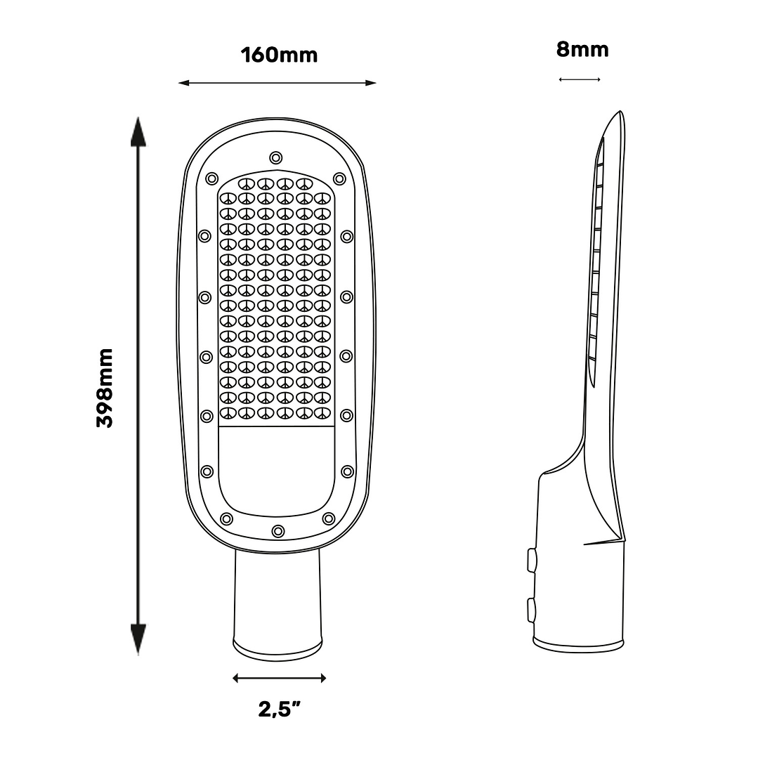- Aplicación: Ideal para instalación en calles, avenidas, estacionamientos y áreas exteriores donde se requiera una iluminación confiable y duradera.