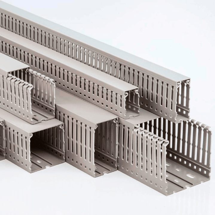 La canaleta ranurada de 100x120 mm, es un accesorio esencial para organizar y conducir cableado eléctrico en tableros y sistemas de telecomunicaciones. Su diseño permite un montaje fácil y cómodo, con una tapa de seguridad que facilita el acceso para mantenimiento. Destaca por su resistencia al fuego, siendo no propagador de la llama. Una solución eficiente y segura para entornos eléctricos.