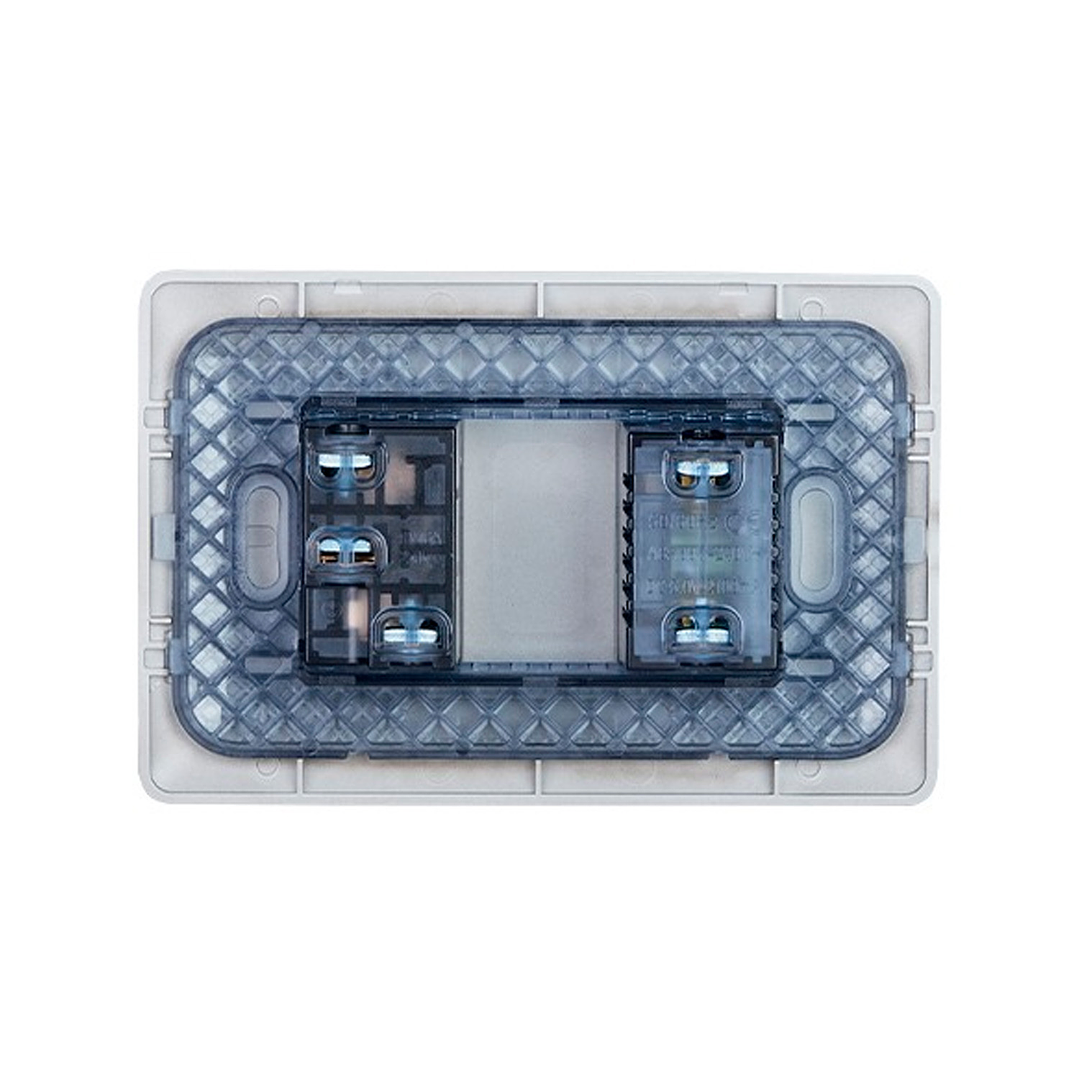 Enchufe simple 10A con toma USB diseñado para instalaciones eléctricas residenciales y comerciales. Su diseño elegante y funcional permite la conexión segura de dispositivos eléctricos.