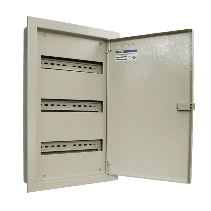 Gabinete metálico embutido para 36 módulos está diseñado para el montaje de dispositivos con enganche al riel DIN, proporcionando una solución segura y eficiente para la protección de los diferentes circuitos eléctricos instalados. Es ideal para su uso en instalaciones eléctricas de aplicaciones industriales, comerciales y domiciliarias, garantizando un montaje seguro y ordenado.