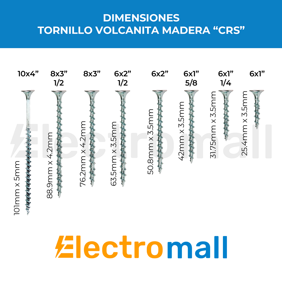 - Tornillo Volcanita Zincado CRS 6x1" 1/4 Caja 100 Unidades